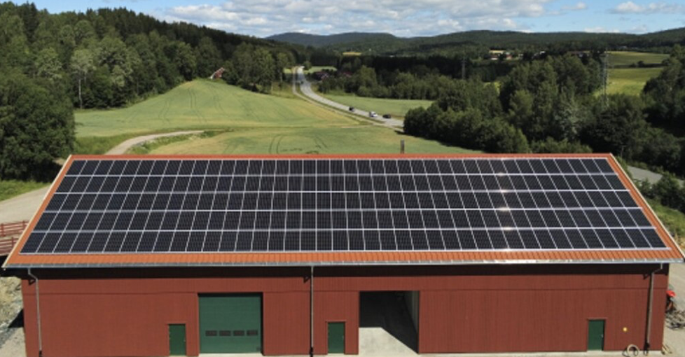 Vi produserer strøm via solcellepanelene på låvetaket.